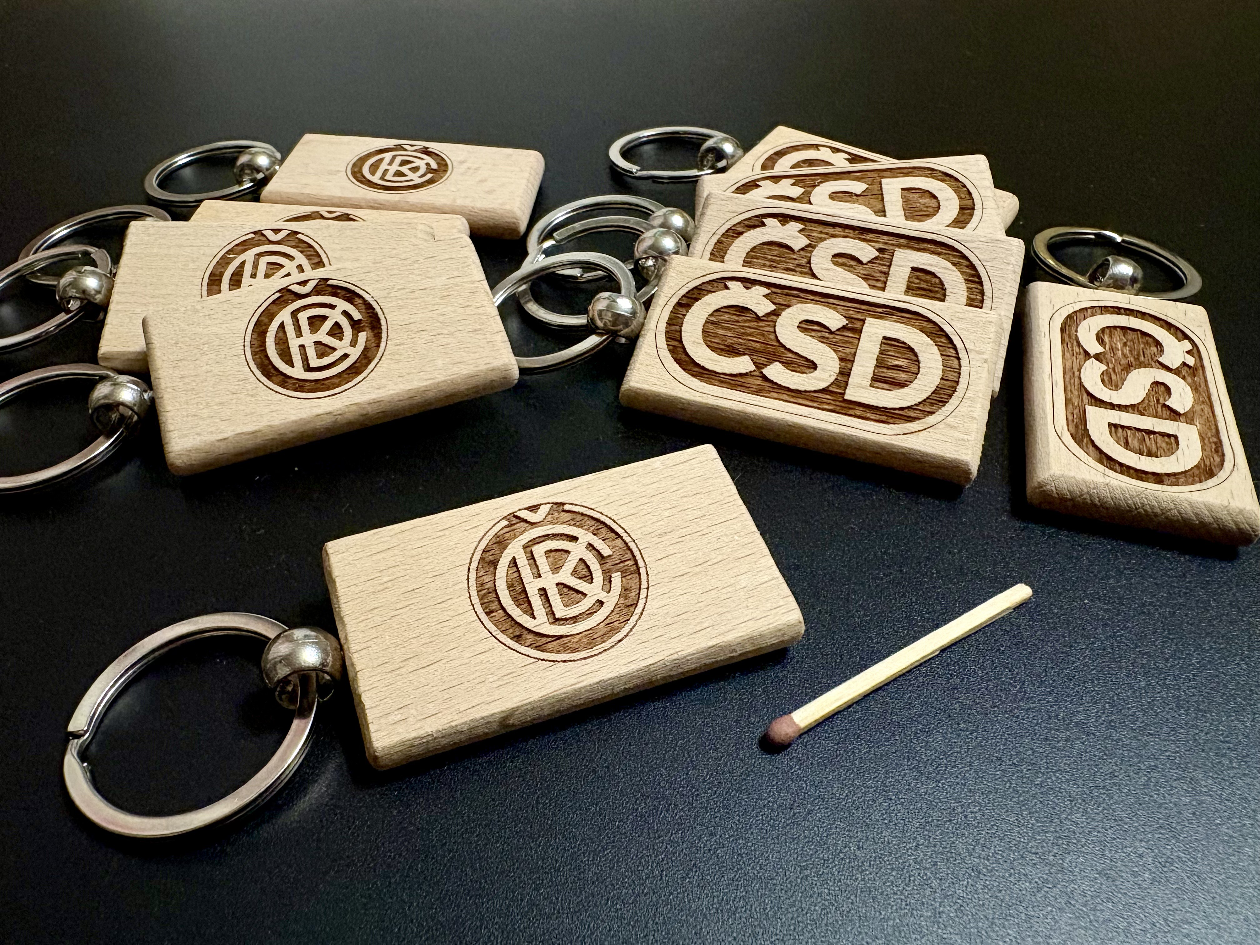 Novinky z dílny MM - Dva dárkové předměty, kat.č. Klíčenka ČSD a kat.č. Klíčenka ČKD, rozměr dřeva cca 30x55 mm s vygravírovaným logem ČSD, nebo ČKD