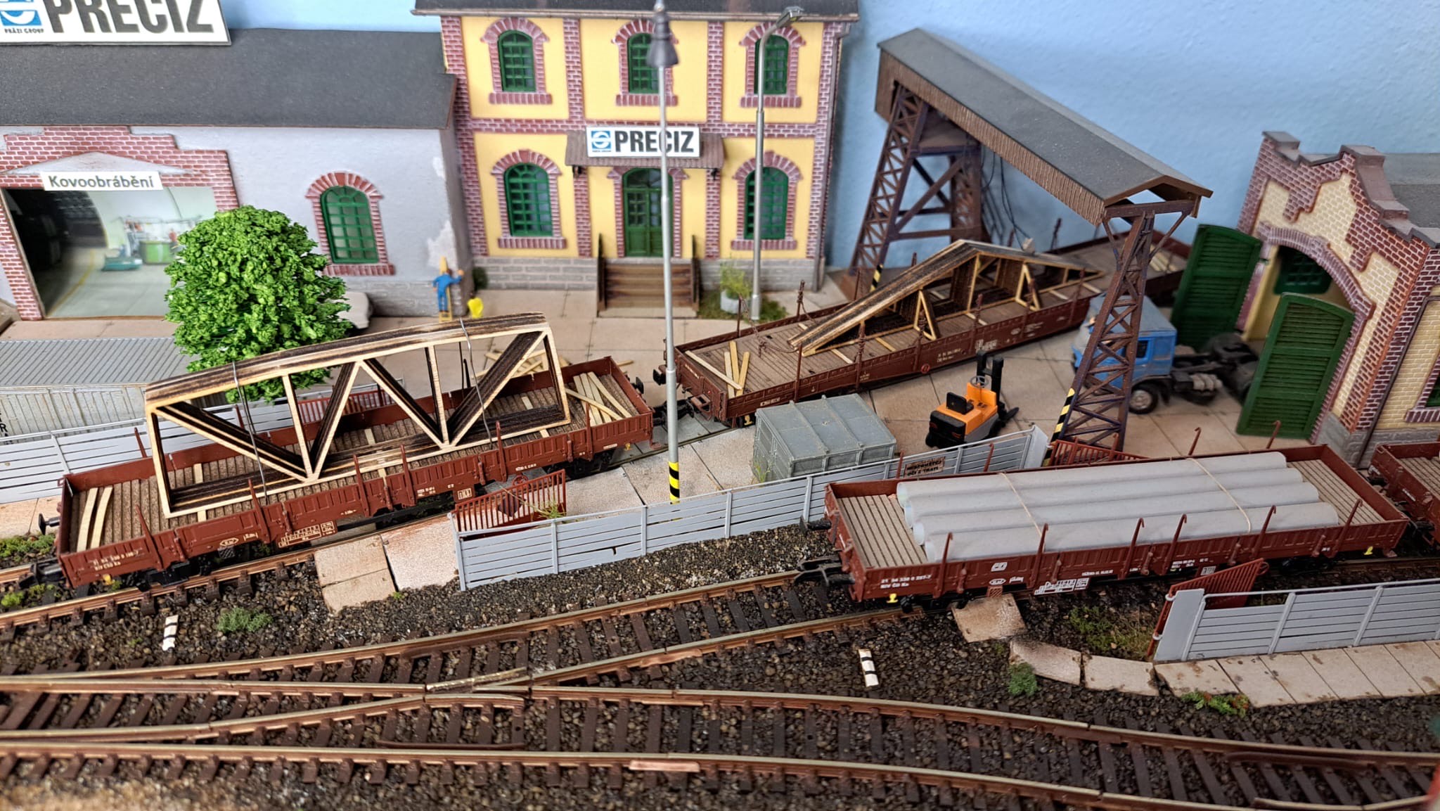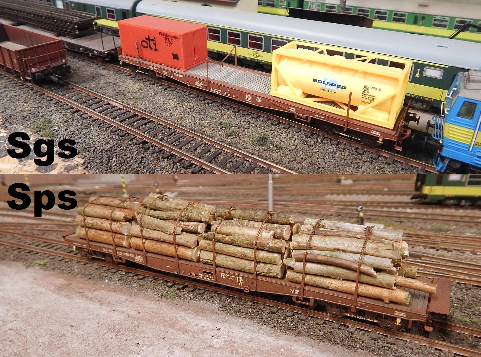 9.2.2018 - Pokračuje stavba ucelenky. Níže jsou nové dva ČD vozy Sps a Sgs + 4 kontejnery