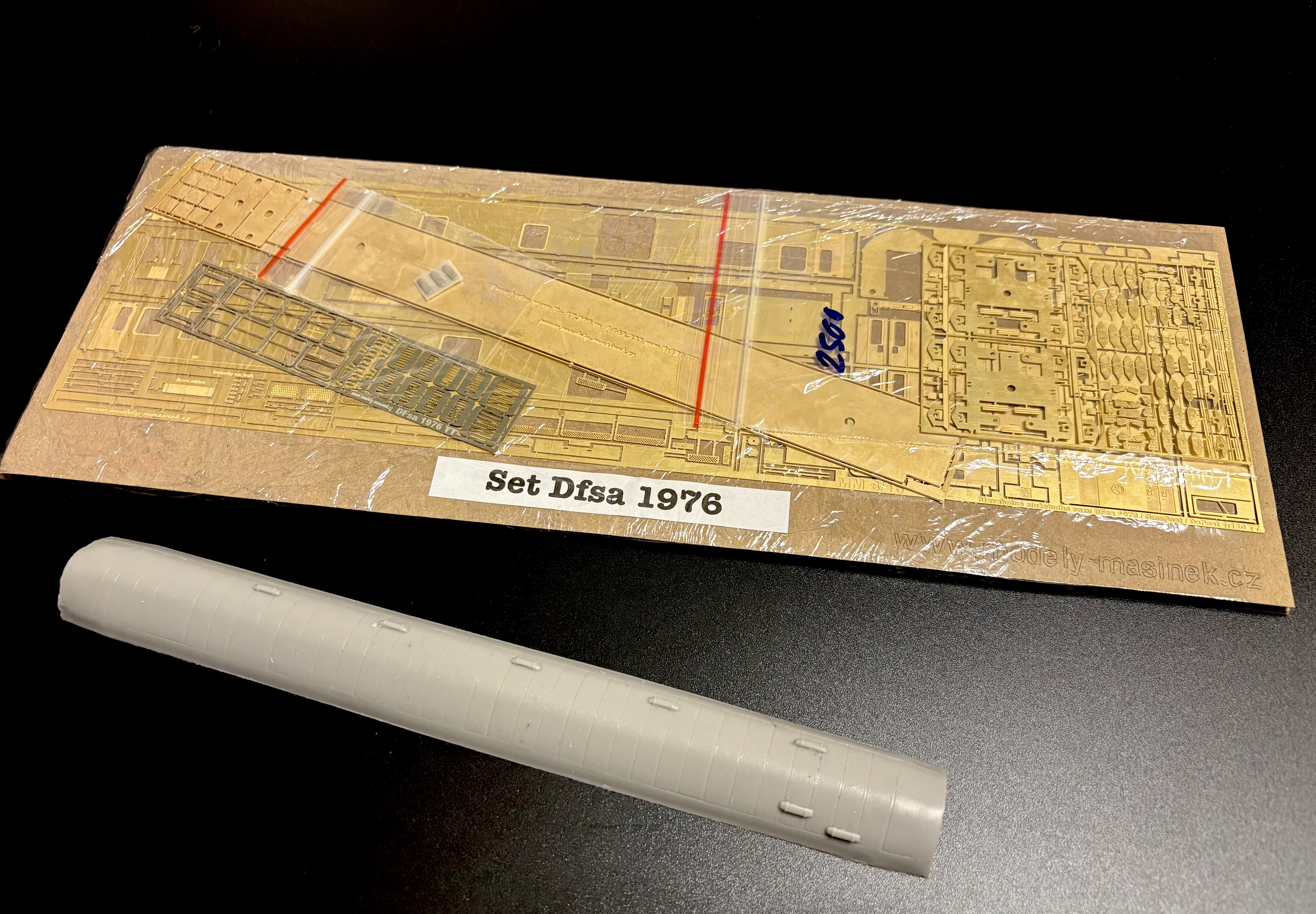 Sada obsahuje : Leptanou nezkrácenou skříň vozu a veškeré vnitřní ( krátké ) přepážky. Vnitřní i vnější dveře jdou trvale otevřít, plná leptaná spodní výbava - bedny jsou včetně zadních stěn, brzdový válec, schody, desky nárazníků, háky, šroubovky, brzd. hadice. Plná střešní výbava - střecha z odlitku, 3D okna - některá jsou i různě otevřená, pevný rám vozu síly 0,5 mm a leptané podvozky 2500mm. Velikost 1:120 TT. Cena 1400 Kč