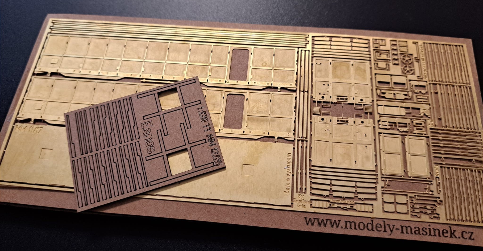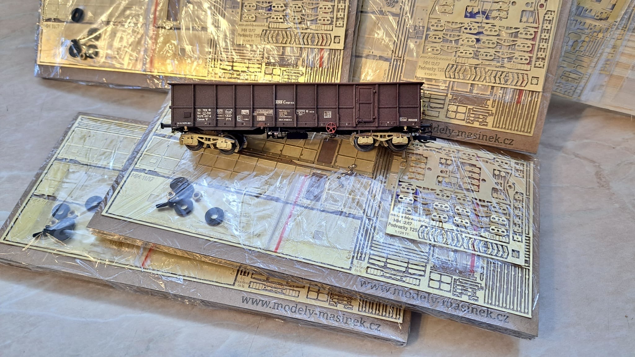 Díly z kartonu nahrazující leptané. Cena za sadu na jeden vůz 50 Kč