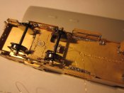 Stavba podvozků není nijak náročná. Jelikož je podvozek kovový, máme zároveň vyřešen i případný přívod proudu z kolejí do vozu. Každý podvozek bude sbírat jeden pól. Pro vodič je v podvozku v horní části připraven malý otvor. Výřez podvozku směřujeme směrem ke konci vozu. Tím vzniká velký prostor pro kinematiku krátkého spřáhla. Při použití plastového rámu můžeme podvozky uchytit libovolným šroubem M2. Při použití kovového podvozku a zároveň pokud má vůz sbírat proud je dobré použít plastové šrouby M2, ty máme v nabídce.